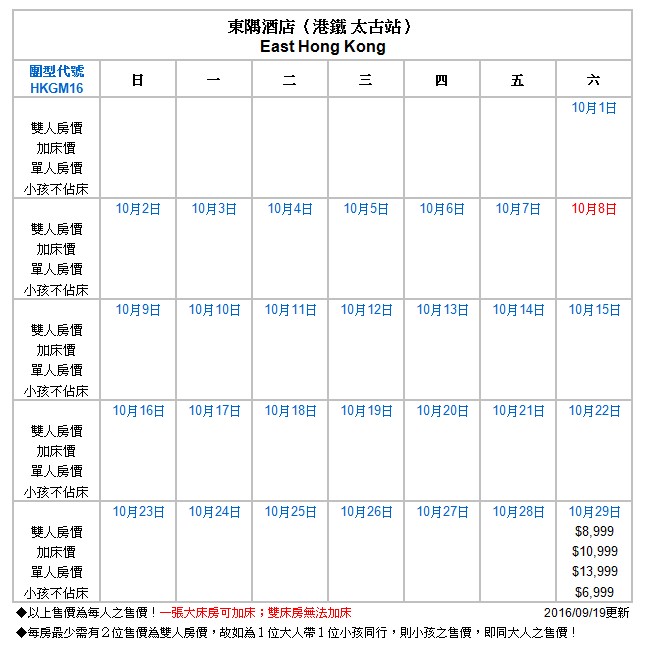 ◆不佔床者,皆不含酒店特備好禮及餐食。